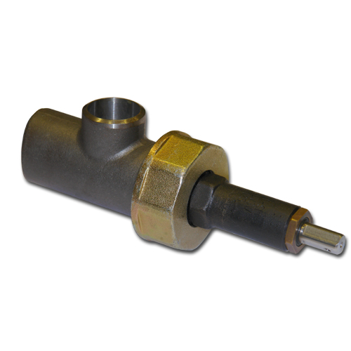 Extraction connection with steel welding point with DIN 2559/22 welding bevel. Optionally with stopper or integrated weld-in valve. Curved welding surface.
