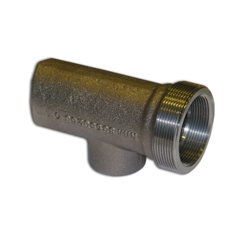 Extraction connection with steel coupler/HDPE. Optionally with stopper or integrated weld-in valve. Curved welding surface.